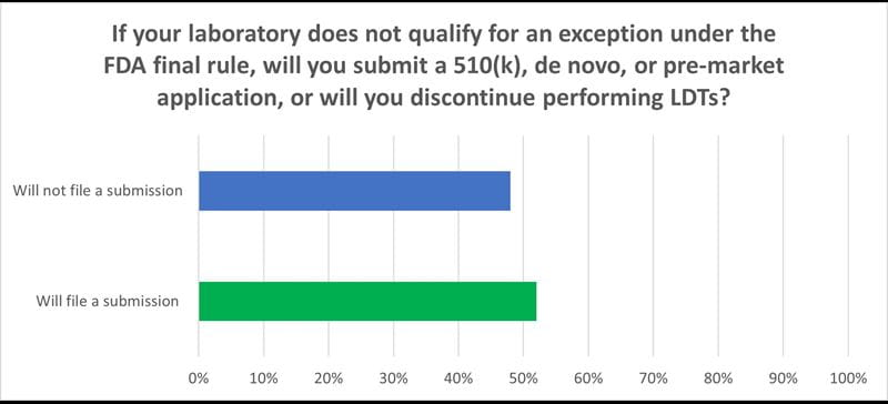Our third survey, which was conducted in July and early August 2024, continued to explore the impact of the LDT final rule on clinical laboratories and their ability to provide testing services. Laboratories were specifically asked about the premarket review provisions, potential delays in patient care, and which agency should regulate LDTs.