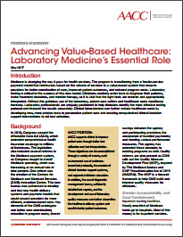 AACC supports efforts to improve patient care through better test utilization and test interpretation. These objectives can be accomplished through a variety of means, such as increased use of evidence-based test protocols, the creation of clinical decision support systems, and expanded clinician education. In addition, the use of diagnostic management teams, sufficiently detailed test reports, and the development and use of laboratory quality measures can further streamline the healthcare delivery system and result in better patient outcomes.