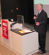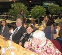 Dr. Arthur Karmen introduce the 2011 Van Slyke award winner Metro section enjoy dinner at Siemens Metro section at Van Slyke Award Dinner Van Slake Award Dinner 2011 Dr. Ramanujan, Dr. Lauks and Dr. Karmen chat with award winner